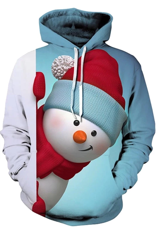 Chirstmas Hoodie Snowman Pattern Pullover Sweatshirt