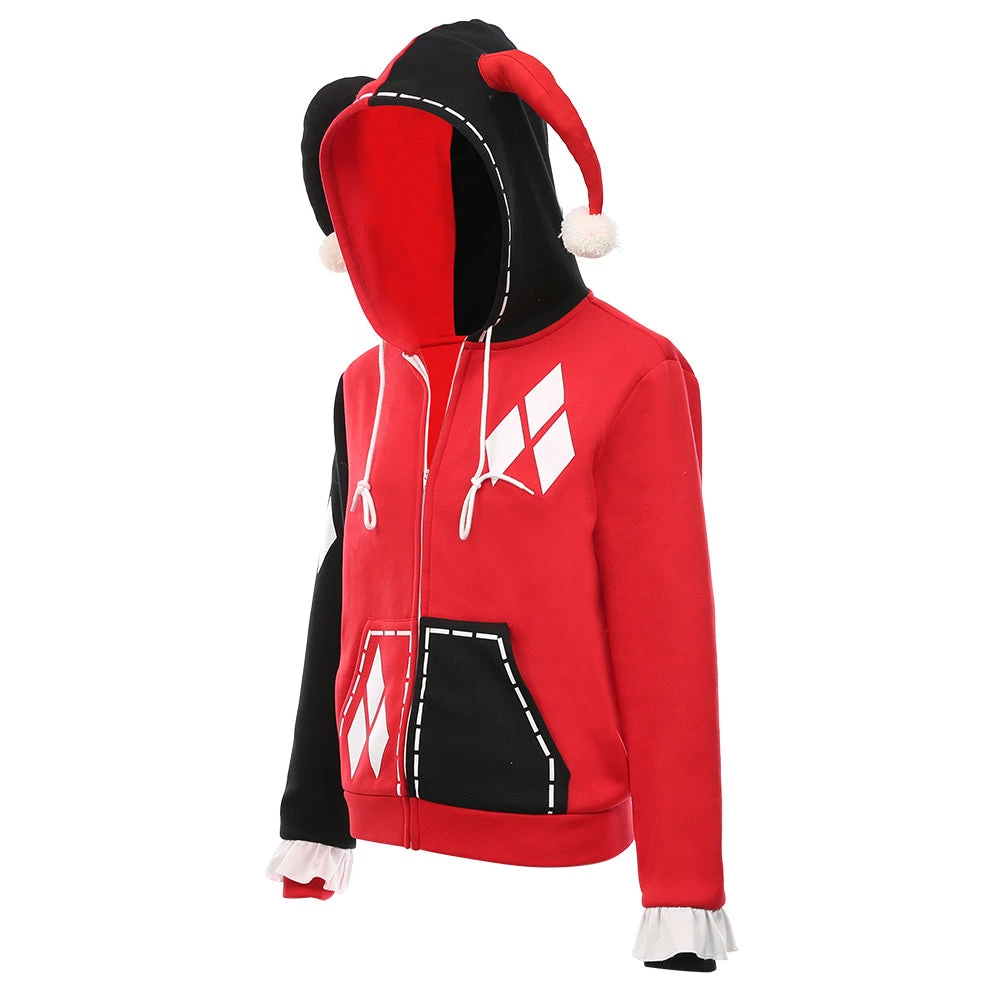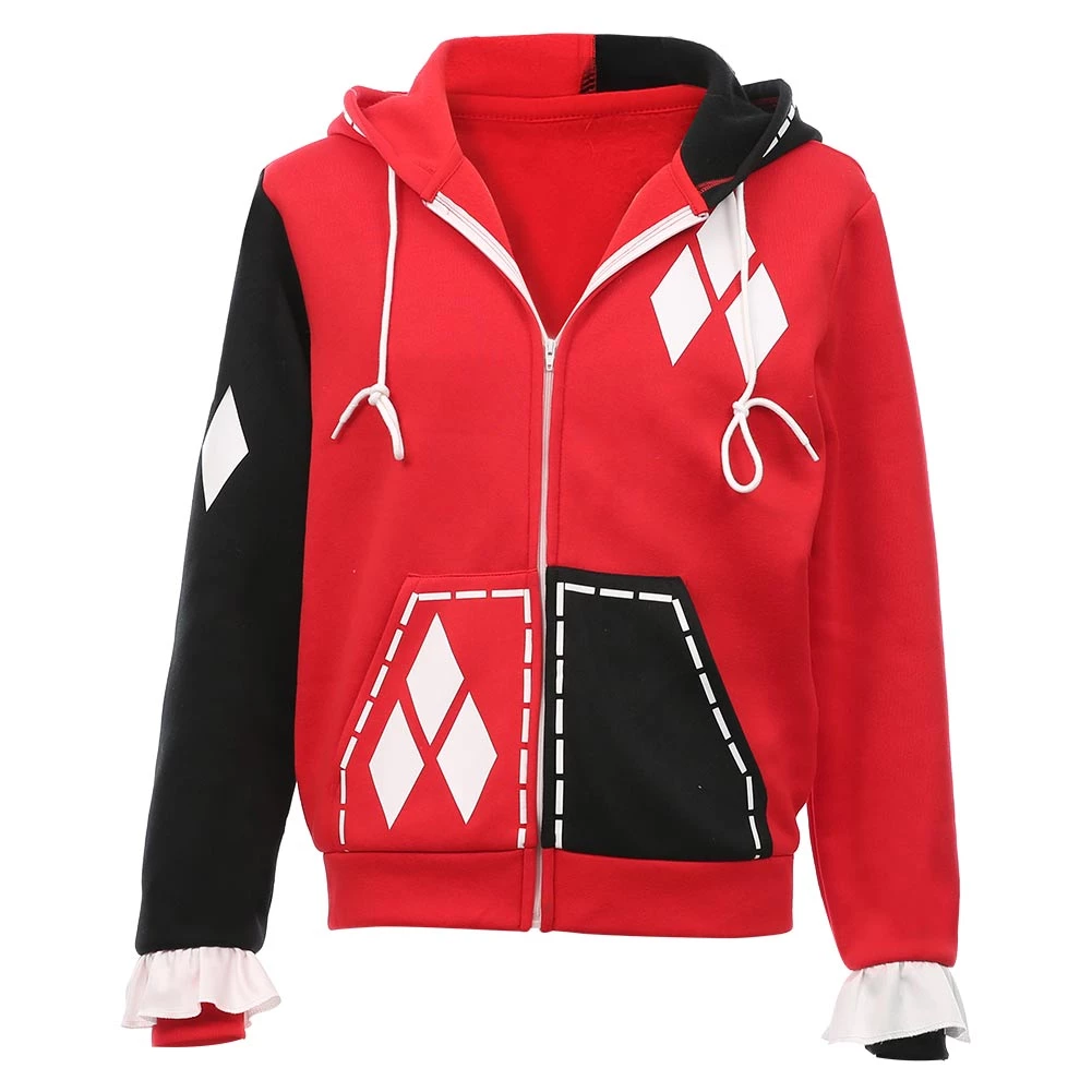 Harley Quinn Hoodie Zip Up Jacket Sweatshirt Halloween Carnival Suit for Juniors Teens Cosplay Costume