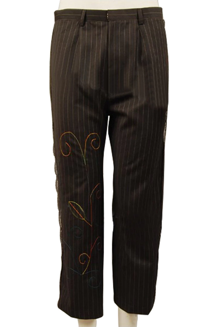 Detail: Tailor Made Replica Johnny Depp Mad Hatter floral pattern embroider pinstripe pants in 2010 Tim Burton’s Alice In Wonderland Movie,made in your own measurements.