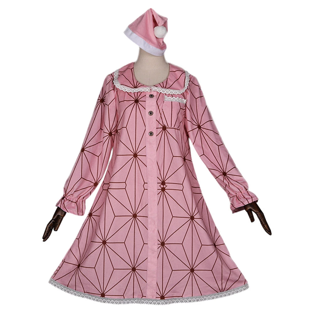 Demon Slayer Kamado Nezuko Pajamas Dress Hat Outfit Cosplay Costume