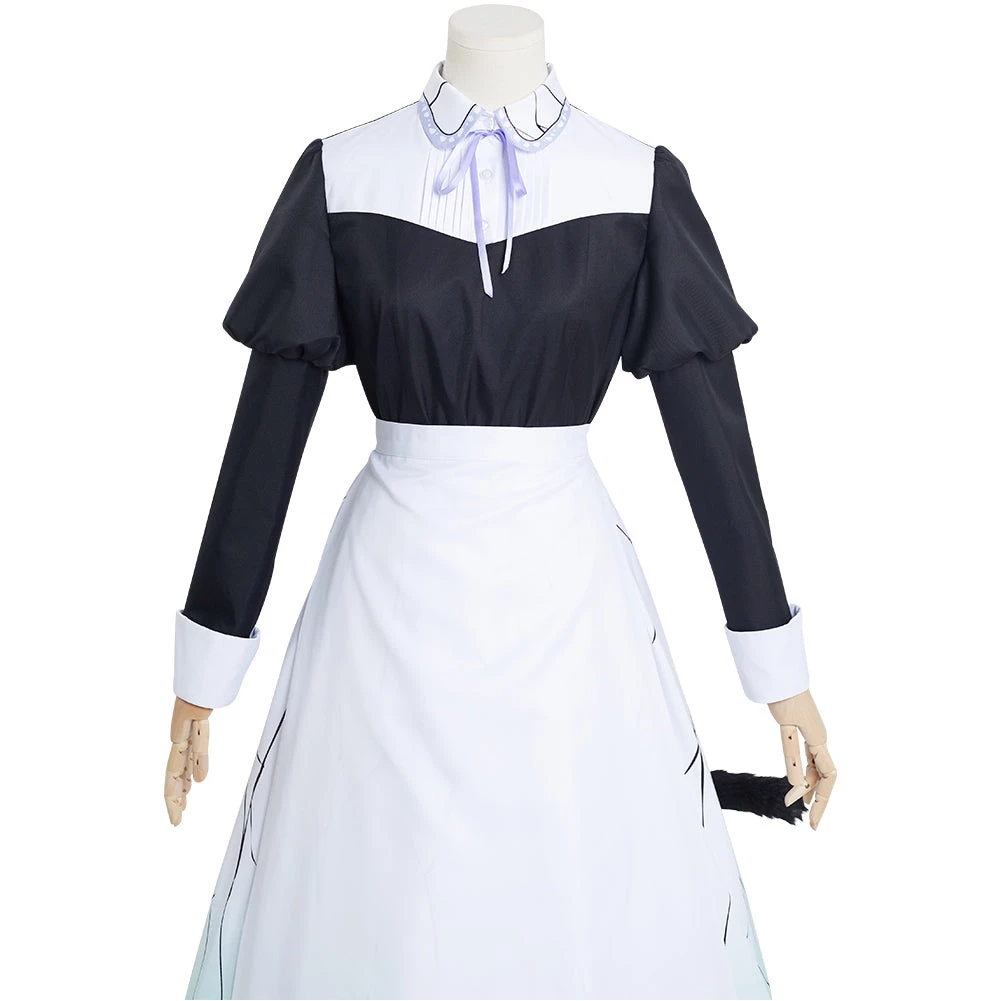 Package included: Apron + Bowknot + Dress + Headband + Neck Ornament + Stocking*2 + Tail