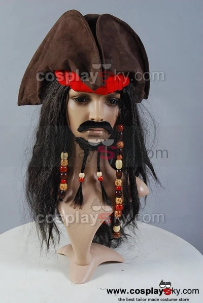 Captain Jack Sparrow’s item set of hat, wig (beads included) and headband, high quality product. Perfect for Halloween and Pirates of the Caribbean cosplay.