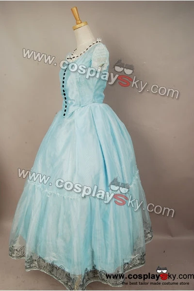Detail:Â Great Replica dress made the same as Alice in the Tim Burton’s 2010 Alice in Wonderland movie.Embroidery at the bottom hem and the buttons on front,side striped on the back top,there is circle underneath navy-and-white striped silk attached to the inside of the skirt ,as you can see from the pic, exactly the same as in the movies.